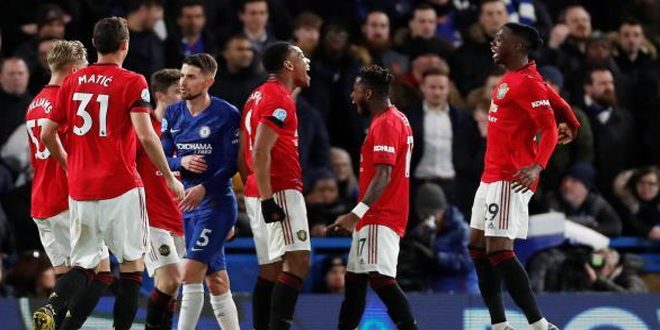 اقترب مانشستر يونايتد من المربع الذهبي للدوري الإنكليزي الممتاز لكرة القدم بفوزه اليوم على مضيفه تشيلسي 2-صفر بفضل هدفي أنطوني مارسيال وهاري مغواير.