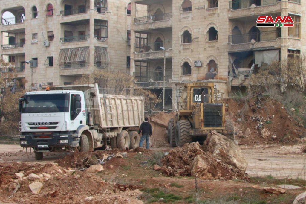 بدأت محافظة حلب فتح الطرقات وإزالة السواتر الترابية من الشوارع في حي جمعية الزهراء غرب حلب الذي كان أحد نقاط الدفاع عن المدينة بعد دحر الإرهاب من الريف الغربي.