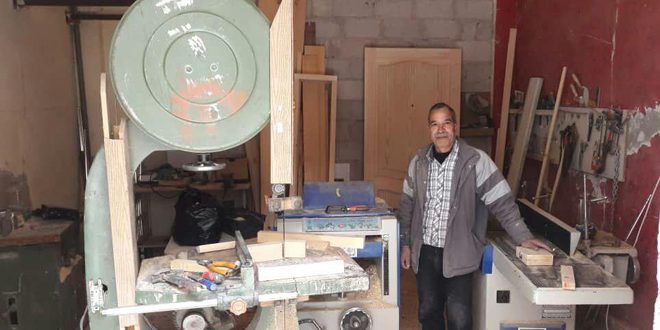 عاد محمد زياد عبيد إلى ورشته الصغيرة بمنطقة حرستا في ريف دمشق ليمارس مهنة النجارة التي ورثها عن والده بعد انقطاع لسنوات جراء تخريب الورشة من قبل الإرهابيين.