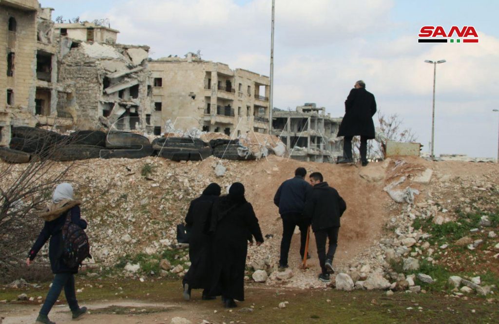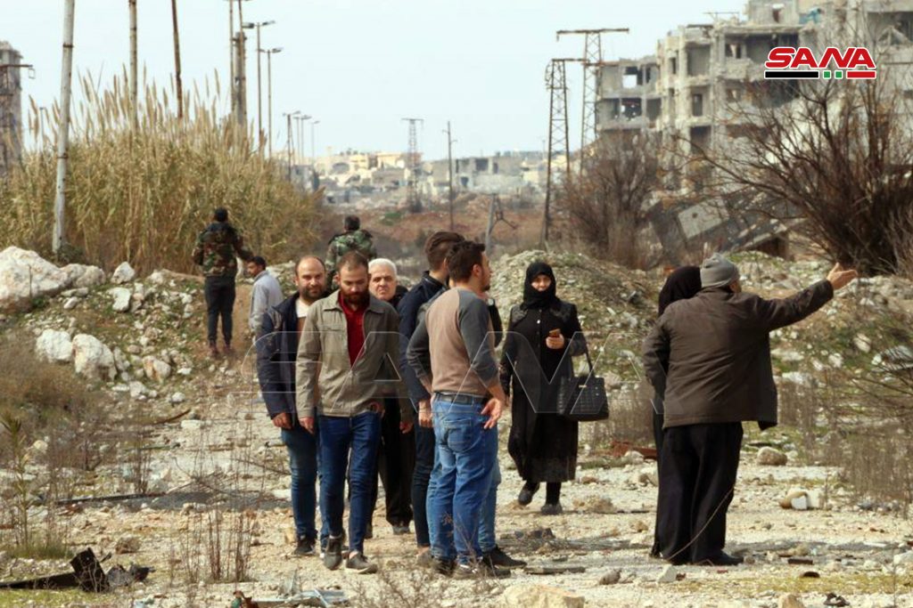 2020-02-18حلب-سانادخلت عدد من العائلات إلى حي جمعية الزهراء غرب حلب لتفقد منازلها بعد دحر الإرهابيين من الريف الغربي. حي جمعية الزهراء 2020-02-18manhal