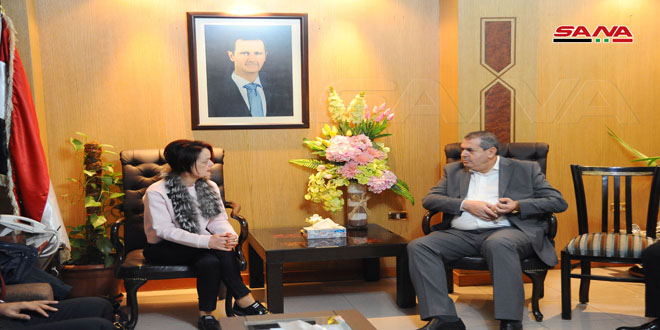 بحث الدكتور عاطف النداف وزير التجارة الداخلية وحماية المستهلك مع وفد من برنامج الأغذية العالمي برئاسة كورين فلايشر الممثل والمدير الإقليمي للبرنامج سبل تعزيز وتطوير علاقات التعاون بين الجانبين وفتح آفاق جديدة له.