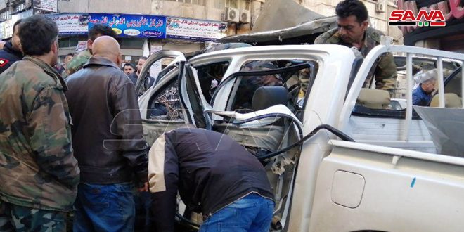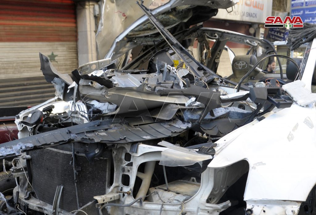 وكان أصيب 5 مدنيين بجروح أمس الأول أحدهم إصابته بليغة جراء انفجار عبوة ناسفة لصقها إرهابيون بسيارة وذلك أثناء مرورها بالقرب من كراجات الانطلاق في منطقة باب مصلى بمدينة دمشق.