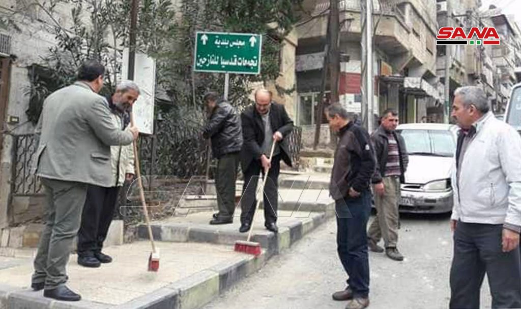 عضو المكتب التنفيذي عن قطاع الزراعة أحمد عيد أشار في تصريح لـ سانا إلى أن الوحدات الإدارية وبالتعاون مع المحافظة نفذت في تجمع قدسيا للنازحين بريف دمشق حملات نظافة واسعة وندوات توعوية موجهة للأهالي وطلاب المدارس حول أهمية الحفاظ على البيئة إلى جانب تأهيل الأرصفة في عدد من شوارع التجمع.