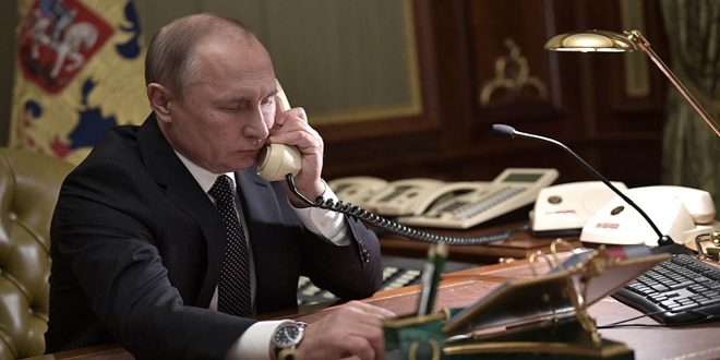 أكد الرئيس الروسي فلاديمير بوتين خلال اتصال هاتفي اليوم مع رئيس النظام التركي رجب طيب أردوغان ضرورة الاحترام غير المشروط لسيادة سورية وسلامة أراضيها معرباً عن قلقه البالغ إزاء استمرار اعتداءات الإرهابيين في محافظة إدلب.