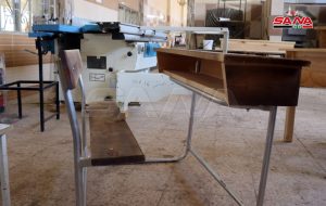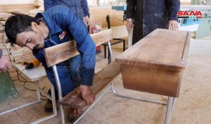 أنتج طلاب ثانوية الشهيد مهيب علوان الصناعية في ديرالزور 17 ألف مقعد دراسي لتأمين احتياجات مدارس المحافظة.