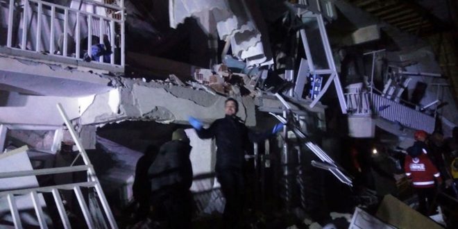 وكانت حصيلة سابقة أفادت بمصرع سبعة أشخاص بينهم ثلاثة أطفال وإصابة خمسة آخرين جراء الزلزال الذي لا يبعد مركزه كثيرا عن سطح الأرض إلى جانب وجود أشخاص آخرين محاصرين تحت أنقاض مبان في جنوب شرق تركيا.