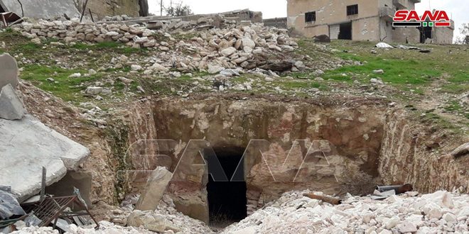 نفق محصن تحت الأرض أقامته التنظيمات الإرهابية داخل بلدة كفرسجنة بريف إدلب