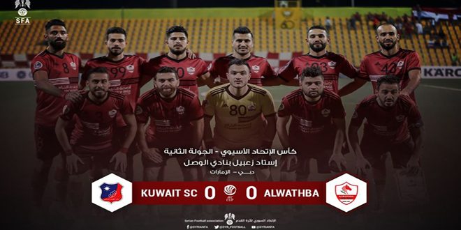 تعادل فريق الوثبة مع الكويت الكويتي سلباً في المباراة التي جمعتهما اليوم في الإمارات العربية المتحدة ضمن الجولة الثانية من دور المجموعات لبطولة كأس الاتحاد الآسيوي لكرة القدم.