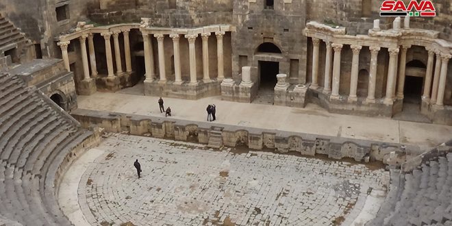 وشهدت مدينة بصرى منذ عودة الاستقرار عدة زيارات لوفود سياحية وأقيم على مسرحها حفل فني جسد تراث حوران.