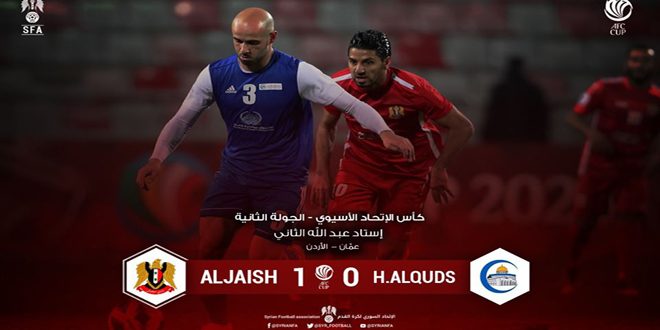 فاز فريق الجيش على هلال القدس الفلسطيني بهدف دون رد ضمن الجولة الثانية من دور المجموعات لبطولة كاس الاتحاد الآسيوي لكرة القدم وذلك خلال المباراة التي جمعتهما اليوم في العاصمة الأردنية عمان.