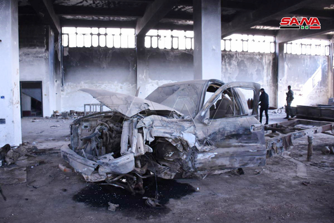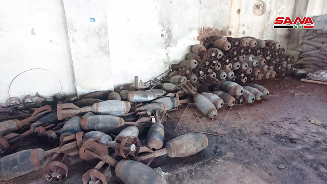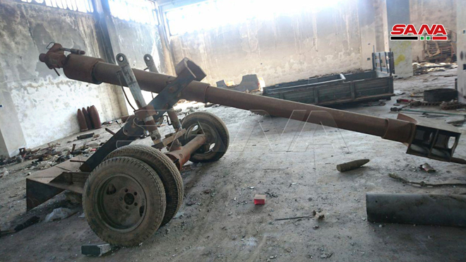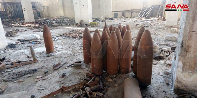العثور على معمل للقذائف من مخلفات الإرهابيين في أحد معامل الخيوط بريف المهندسين غرب حلب