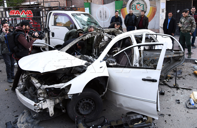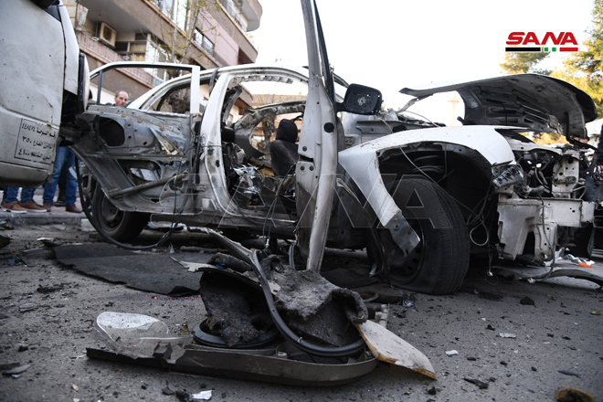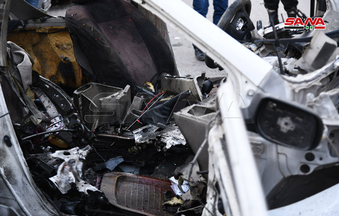 وكان أصيب في الـ 20 من الجاري مواطنان بجروح بسيطة جراء تفجير إرهابيين عبوة ناسفة داخل سيارة في منطقة المرجة بدمشق.