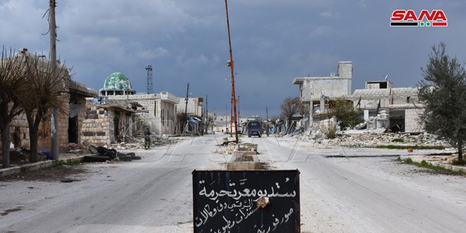 كاميرا سانا برفقة رجال الجيش في بلدة معر تحرمة بريف ادلب الجنوبي بعد دحر الإرهاب عنها