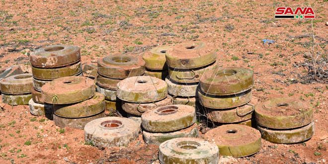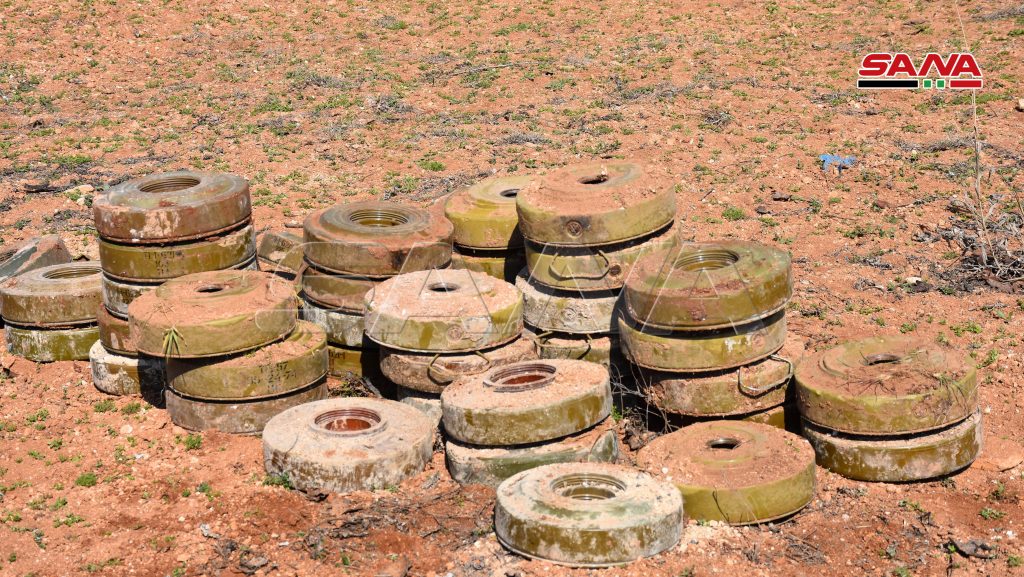 2020-02-25إدلب-سانافككت وحدات الجيش ألغاماً من مخلفات الإرهابيين في تلة النار بريف إدلب الجنوبي بعد دحر الإرهاب عنها. إدلب تفكيك ألغام 2020-02-25admin