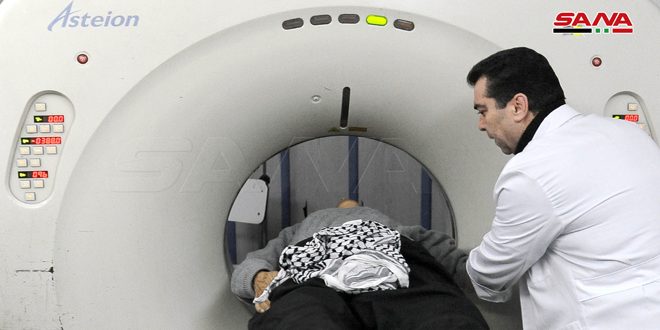 وذكر الأمين أن جهاز تصوير الرنين المغناطيسي حديث ويعمل بدقة عالية ويتيح تصوير الحالات المعقدة في الدماغ والعمود الفقري والمفاصل ويقدم الخدمة لحوالي سبعين مراجعاً يومياً وبتكلفة تبلغ 4500 ليرة للمرضى من خارج المشفى مقارنة بسبعين ألف ليرة سورية للصورة الواحدة في المراكز والمشافي الخاصة.