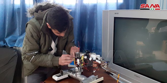 انطلاقا من شغفه بعالم الالكترونيات استطاع الطالب كريم الجمال من السويداء تصميم ذراع آلية يمكنها كتابة الأرقام ونقل الأشياء ورسم أشكال هندسية عن طريق التحكم بها عن بعد معتمدا في مكوناتها على مجموعة من الأدوات المهملة من توالف البيئة والأشياء البسيطة المتوافرة لديه.