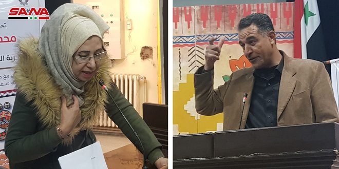 واستهلت اللقاء الشاعرة نورة خليف بقصائد وطنية حملت عناوين “وطن منصور” و”دم الخزامى” و”عاصمة الياسمين” كثفت فيها الصور البيانية التي تظهر آثار الهجمة الإرهابية على سورية وبطولات جيشها وصمود ابنائها في وجه كل معتد.