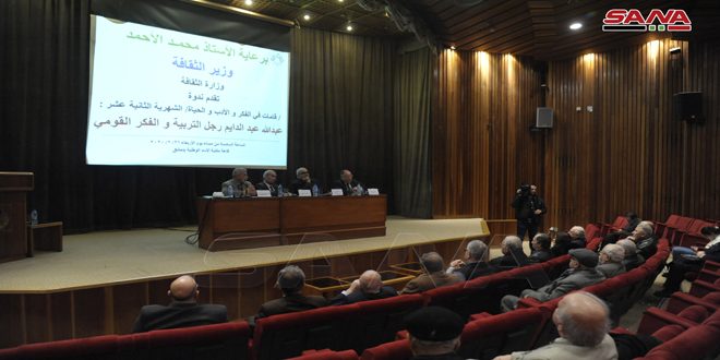 الندوة التي أقيمت في مكتبة الأسد الوطنية تحت عنوان عبدالله عبدالدايم رجل التربية والفكر القومي أدارها الدكتور اسماعيل مروة الذي أوضح أن عبد الدايم ولد عام 1924 ورحل عام 2008 وكان عبر مسيرته العلمية قامة فكرية قومية تربوية سورية تمتع بالعلم والمعرفة حيث امضى سنوات من عمره بين فرنسا وسورية سفيرا للانسانية.