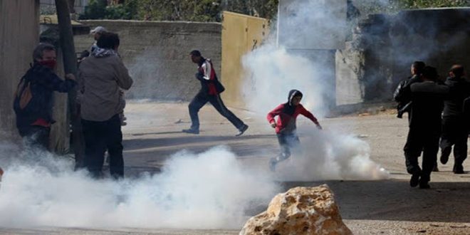 أصيب عشرات الفلسطينيين بحالات اختناق اليوم جراء اعتداء قوات الاحتلال الإسرائيلي عليهم خلال اقتحامها بلدة بيت أمر شمال الخليل بالضفة الغربية.