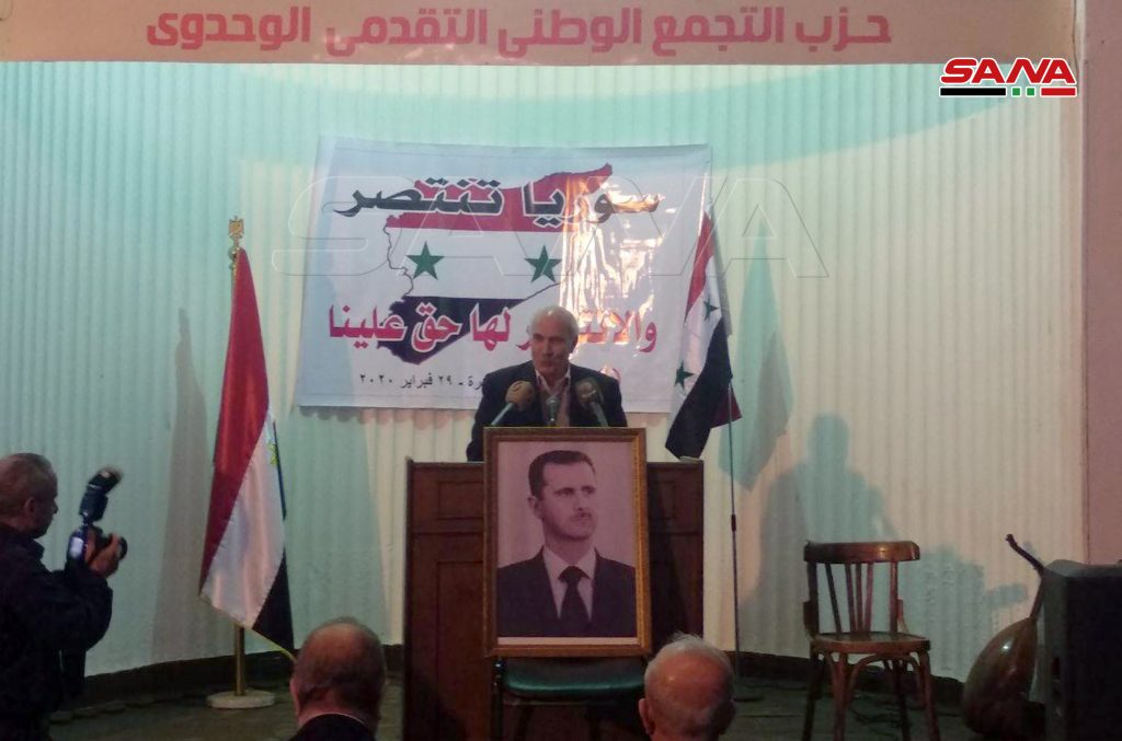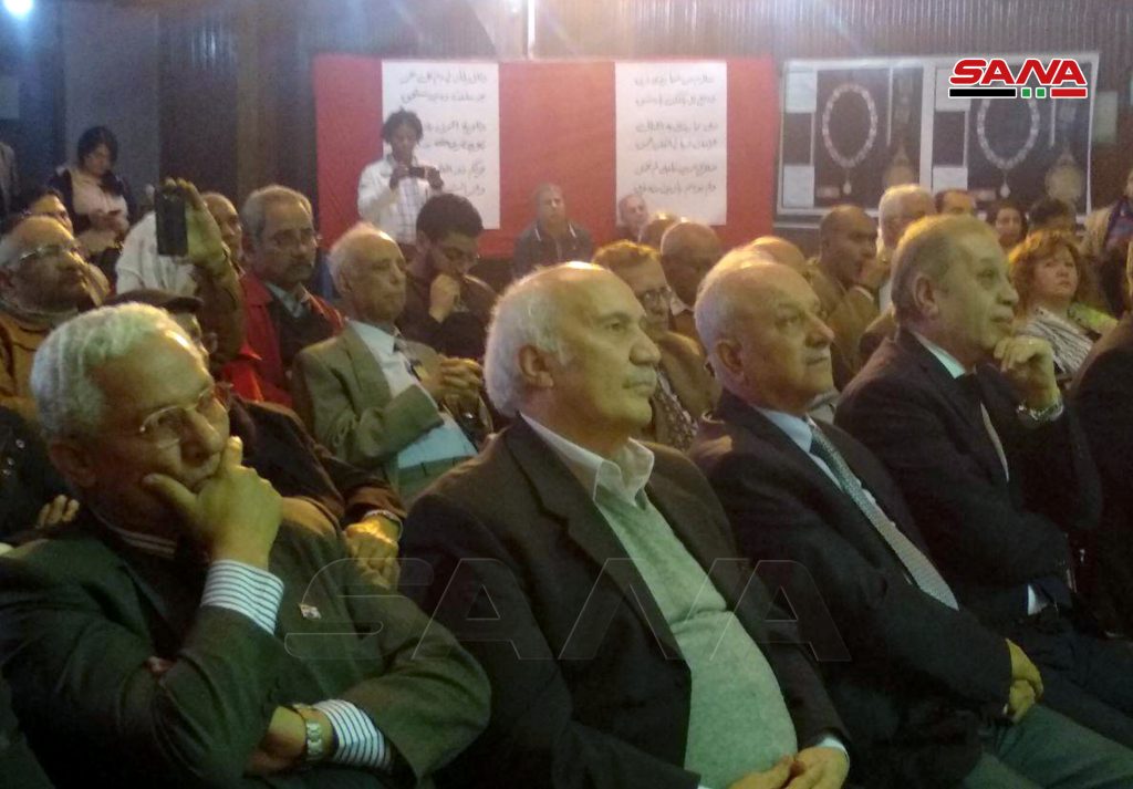 من ناحيته قال رئيس الحزب الشيوعي المصري صلاح عدلي: نحن نناضل في مواجهة أعداء الأمة من امبريالية وصهيونية وإرهاب ودول إقليمية معادية وهم أعداء سورية التي تخوض ضدهم معركة واضحة المعالم.