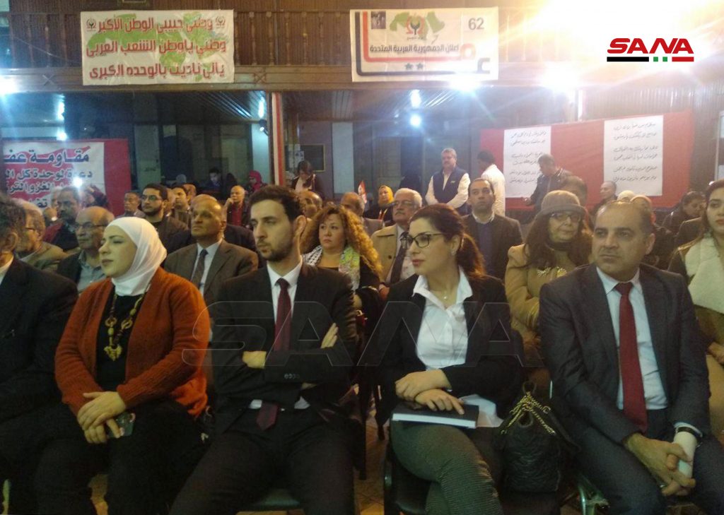 بدوره قال عاطف مغاوري نائب رئيس حزب التجمع: من القاهرة نعلنها دائما هنا دمشق موجها تحية إكبار للجيش العربي السوري الباسل وللدولة السورية التي تحارب الإرهاب نيابة عن العالم.