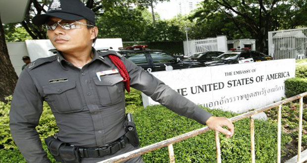 كشف نائب المفتش العام للشرطة التايلاندية أنه أعطى تعليماته إلى مكتب شرطة العاصمة لتشديد الاجراءات الأمنية في محيط السفارة الامريكية.