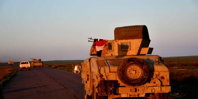 ونقل موقع السومرية نيوز عن الحشد الشعبي قوله اليوم إن قوات من الجيش العراقي والحشد دمرت مقرا لـ “داعش” يحتوي على مواد طبية ولوجستية وغيرها لافتا إلى أن القوات المشتركة تواصل تقدمها لتطهير الصحراء الرابطة بين المحافظات الثلاث.