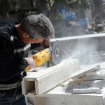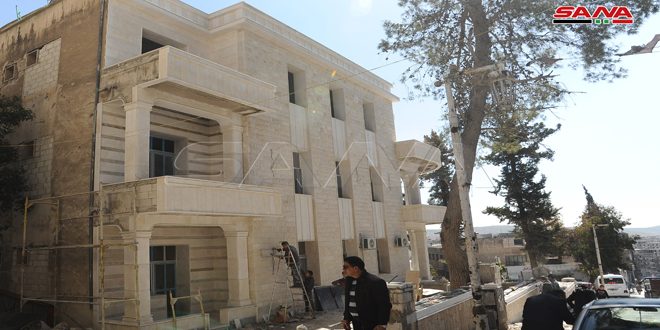 ومن فنيي ورشات الإكساء بين معتصم الخطيب أن نسبة العمل في الطابق الثالث تجاوزت 60 بالمئة وخلال عشرة أيام تكون منجزة فيما أشار بهاء البني إلى أن العمل يمضي بوتيرة سريعة وأنجز 80 بالمئة من أعمال إكساء الرخام الخارجي وذكر خلدون عرنوس أنه تم إكساء 2500 متر مربع من الواجهات الخارجية بالحجر حتى الآن وأن الأعمال الأخرى تشطب بالتدريج.