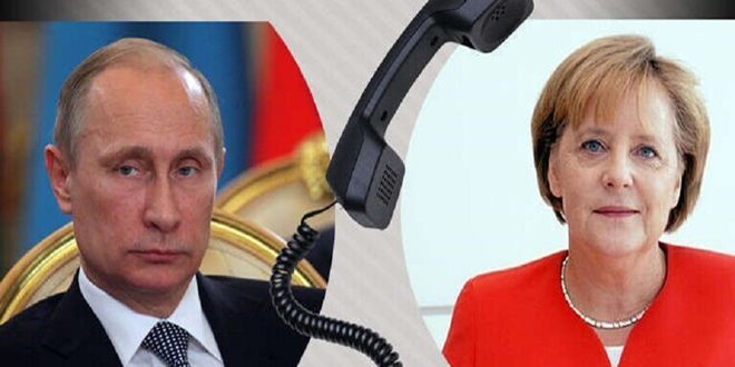 بحث الرئيس الروسي فلاديمير بوتين في اتصال هاتفي مع المستشارة الألمانية أنجيلا ميركل اليوم الوضع في سورية.