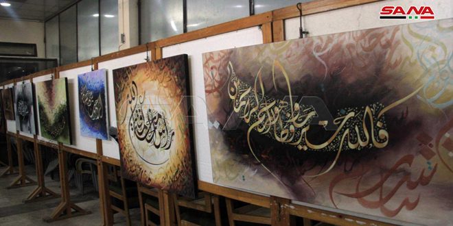 أعمال فنية لستة خطاطين من أبناء حلب احتضنها معرض “الخط العربي” الذي أقامته مديرية الثقافة اليوم بالتعاون مع مركز الفنون التشكيلية في صالة تشرين بالمدينة.