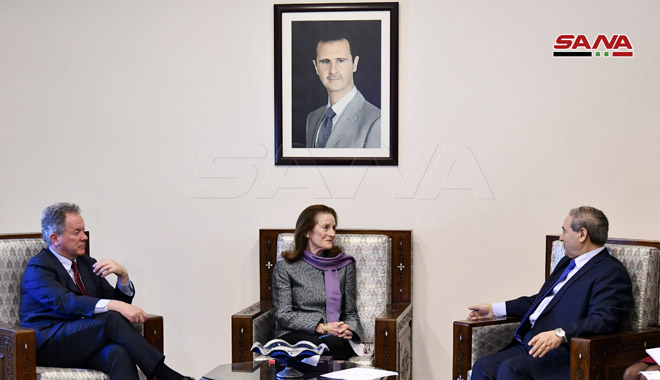 وفي الإطار ذاته بحث المقداد نائب وزير الخارجية والمغتربين خلال لقائه في وقت سابق صباح اليوم مع بيسلي وفور والوفد المرافق لهما القضايا المتعلقة بالتعاون المشترك بين الحكومة السورية وكل من برنامج الأغذية العالمي و”اليونيسيف” بما يساعد في تحسين الوضع الإنساني وتلبية الاحتياجات الأساسية الإنسانية والمعيشية للمواطنين السوريين المتضررين من الأزمة الناتجة عن الحرب الإرهابية على سورية.