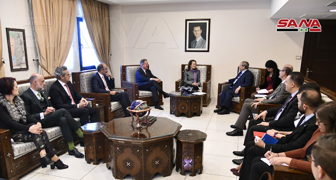 حضر اللقاء الدكتور فيصل المقداد نائب وزير الخارجية والمغتربين وعبد المنعم عنان مدير إدارة المنظمات الدولية والمؤتمرات ومحمد العمراني مدير إدارة المكتب الخاص في وزارة الخارجية والمغتربين.