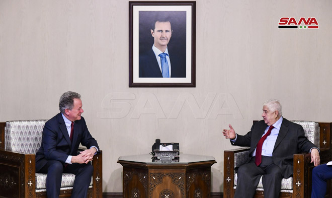 استقبل وليد المعلم نائب رئيس مجلس الوزراء وزير الخارجية والمغتربين قبل ظهر اليوم الوفد الأممي المشترك برئاسة كل من ديفيد بيسلي المدير التنفيذي لبرنامج الأغذية العالمي وهنريتا فور المديرة التنفيذية لمنظمة الأمم المتحدة للطفولة “اليونيسيف”.