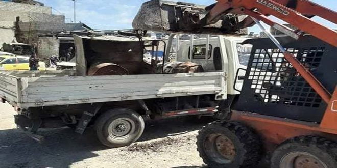 وأوضحت عضو المكتب التنفيذي لقطاع الخدمات والمرافق العامة انتصار جزماتي في تصريح لمندوب سانا أن ورشات مديرية دوائر الخدمات أزالت التعديات والإشغالات غير النظامية ورحلت الأنقاض والأتربة التي كانت تشكل عائقا أمام مرور السيارات والمشاة بهدف تسهيل الحركة في المنطقة وتحسين المظهر الجمالي وواقع النظافة العامة.