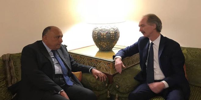وقال المستشار المصري أحمد حافظ المتحدث الرسمي باسم وزارة الخارجية المصرية: إن شكري شدد خلال استقباله غير بيدرسون المبعوث الخاص للأمين العام للأمم المتحدة إلى سورية على ضرورة التصدي لمخاطر تسرب الإرهابيين الأجانب من مناطق وجودهم وأهمية قيام الأمم المتحدة وكل الأطراف المعنية بدورها في ذلك مشيراً في هذا الصدد إلى قيام النظام التركي بنقل أعداد من المرتزقة الإرهابيين من شمال سورية إلى ليبيا.