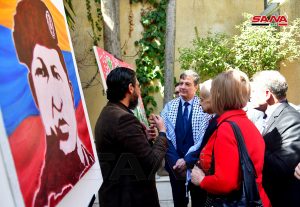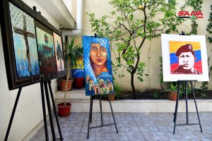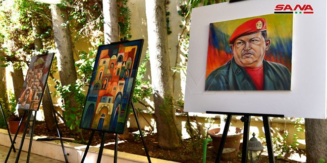 احتفالاً بالذكرى السنوية السابعة لرحيل الزعيم الفنزويلي هوغو تشافيز وتقديرا للسياسات التي أرساها في بلاده من دعم للقضايا العربية وفي مقدمتها قضية فلسطين أقام فنانون فلسطينيون في دمشق معرضا فنيا جماعيا وذلك في السفارة الفنزويلية.