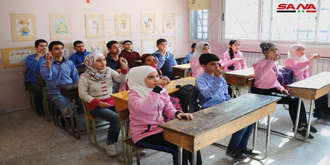 دمشق-سانا بلغتهم الخاصة يتفاعل طلاب معهد الأشخاص ذوي الإعاقة السمعية بدمشق مع بعضهم ومع مدرسيهم …