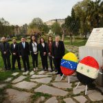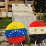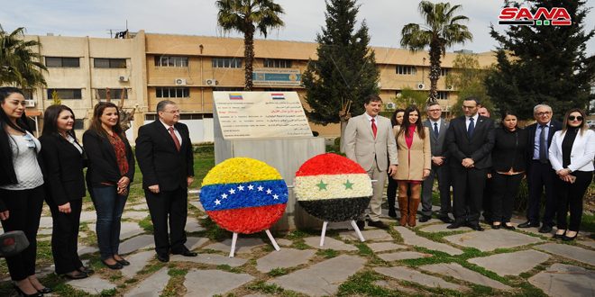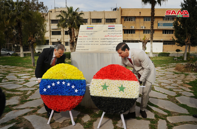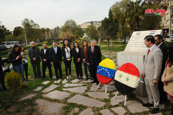 أحيت جامعة دمشق اليوم الذكرى السنوية السابعة لرحيل الزعيم الفنزويلي هوغو تشافيز بوضع إكليل من الزهور على النصب التذكاري الخاص به في حديقة الجامعة وذلك بحضور سفير جمهورية فنزويلا البوليفارية بدمشق خوسيه غريغوريو بيومورجي موساتيس.