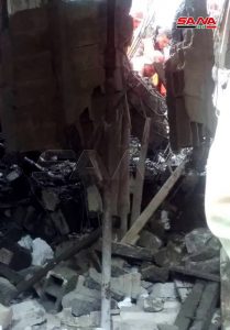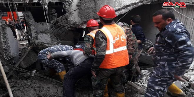 وذكر مدير الدفاع المدني بحمص العميد غياث عاقل في تصريح لمراسلة سانا أنه فور الإبلاغ عن الحادثة توجهت فرق الإنقاذ إلى المكان المذكور وعملت على انتشال العاملين من تحت الأنقاض وإسعافهما إلى مشفى الأهلي بحي الزهراء.