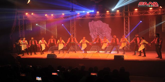 وتضمن حفل افتتاح المهرجان فقرات تعبيرية راقصة قدم لها الفنان محمد الشماط الذي تحدث برفقة أعضاء من الفرقة المسرحية عن أهمية دمشق وريفها وما في تاريخهما من أعلام وثقافات وبطولات.