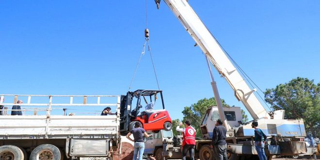 قدمت منظمة الهلال الأحمر العربي السوري آلات لحام بولي ايثلين ورافعات شوكية إلى مؤسسة مياه الشرب بدرعا.