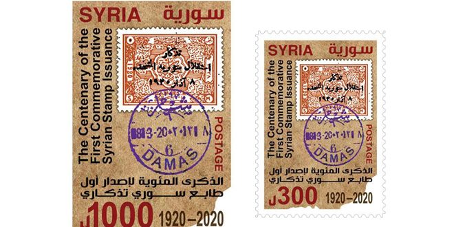 أصدرت المؤسسة العامة للبريد طابعاً بريدياً تذكارياً مع بطاقة بمناسبة الذكرى المئوية لإصدار أول طابع سوري تذكاري.
