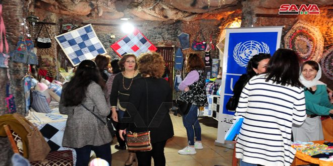 أعمال فنية ومشغولات يدوية تحمل في ثناياها تفاصيل تراثية مستوحاة من جماليات الماضي والحاضر إبدعتها أنامل سيدات احتضنها بازار الربيع الثاني في مدينة السويداء.