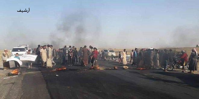 ولفتت المصادر إلى أن مجموعات “قسد” قامت بإطلاق النار على المتظاهرين في محاولة لتفريقهم ما تسبب باستشهاد احد المواطنين وإصابة اثنين آخرين الامر الذي أدى إلى حالة من التوتر لدى أهالي القرى والبلدات المجاورة وعلى خلفية ذلك قام أهالي بلدة سفيرة بريف دير الزور الشمالي بقطع الطريق الرئيس الواصل بين دير الزور والرقة من جهة الجزيرة بالإطارات المشتعلة.