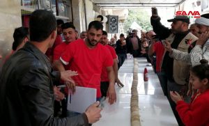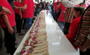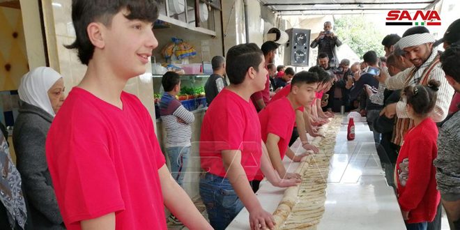 بطول عشرة أمتار تم إعداد أطول سندويشة فلافل في محافظة درعا من قبل أحد المحال في المدينة وتوزيعها مجاناً على المواطنين.