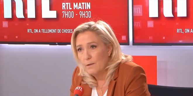 وفي تصريح لها بثته إذاعة “آر تي ال” الفرنسية دعت لوبان إلى “تهديد رئيس النظام التركي رجب طيب أردوغان بفرض عقوبات على بلاده”.