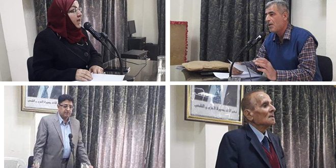 افتتح اللقاء الشاعر عمر خليفة بقصائد متنوعة منها “وحي الشهادة” و”خلود الوطن” و”إلى الفيحاء” و”أطلي” و”إلى ولدي” التي تغنت بقيم الشهادة وانتصارات الجيش العربي السوري.
