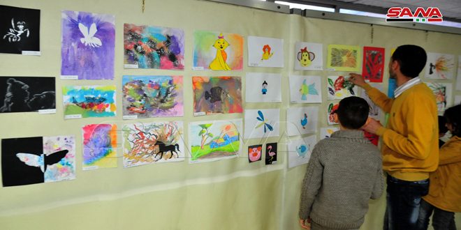 أعمال ولوحات فنية ترجمت مواهب وآفاق الإبداع لدى الأطفال احتضنها معرض إشراق تحت عنوان “بصمة طفل تصنع عالماً وتبني وطناً” في المركز الثقافي العربي بمدينة السويداء.
