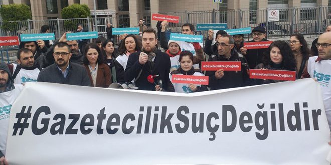 وطالب الصحفيون الذين رفعوا لافتات كتبوا عليها “مهنة الصحافة ليست جريمة”، بالكشف عن المبررات التي دفعت إلى اعتقال الصحفيين بشكل غير قانوني، مشيرين إلى أن تلك الاعتقالات تؤكد أن النظام القضائي في تركيا لا يسير بشكل مستقل.