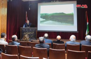وأوضح حمود خلال المحاضرة التي حملت عنوان التنقيبات الأثرية في ريف دمشق أن الكثير من مواقعنا عانت من عمليات التنقيب غير الشرعية من قبل الإرهابيين بغرض تهريبها إلى الخارج اضافة لتخريبهم مواقع اخرى وتدميرها مشيرا إلى استمرار الأنشطة الآثارية لكوادرنا الوطنية وتحملها عبء حماية المواقع الأثرية واللقى المتحفية في مختلف المناطق ولاسيما الساخنة منها.